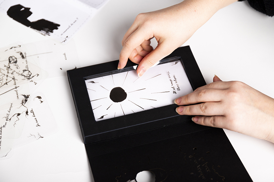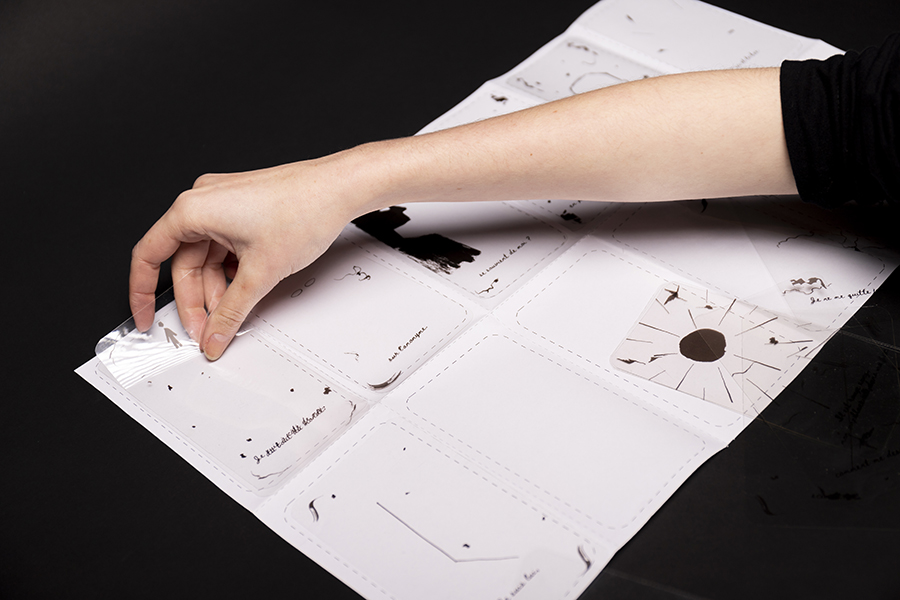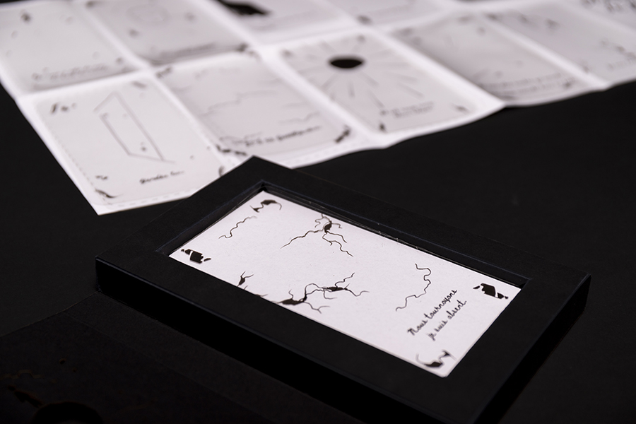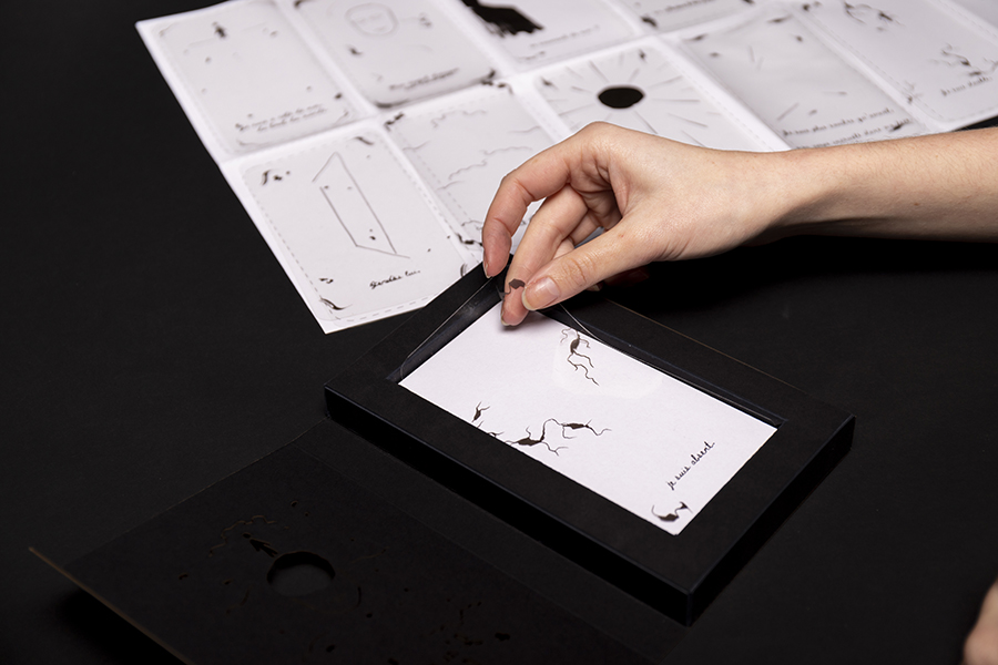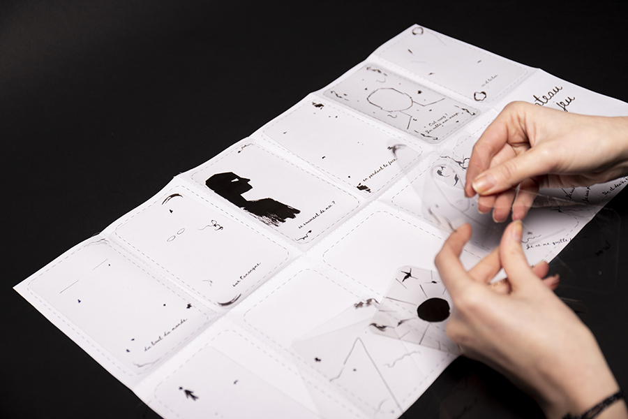 L’édition se présente sous forme de jeu de cartes en paires complémentaires, rangées dans un coffret. Les cartes reflètent nos impressions en tant que spectateurs.