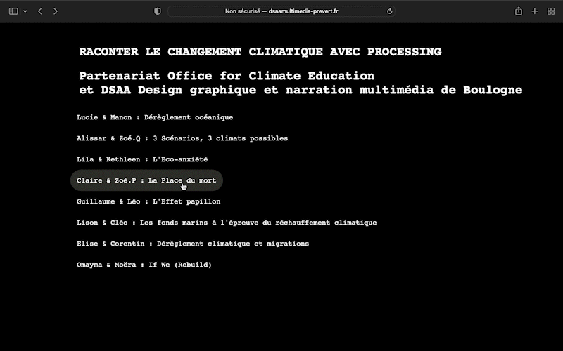 fond de page HTML à l'aide de Processing. Apprentissage de Processing puis de P5. Ce projet vise à représenter