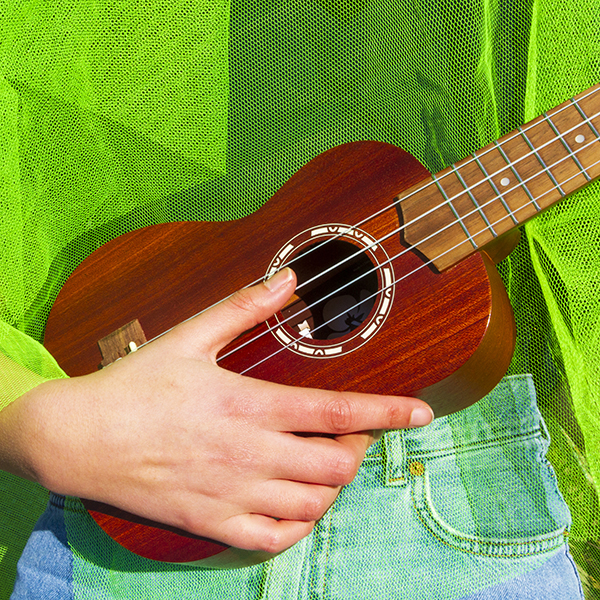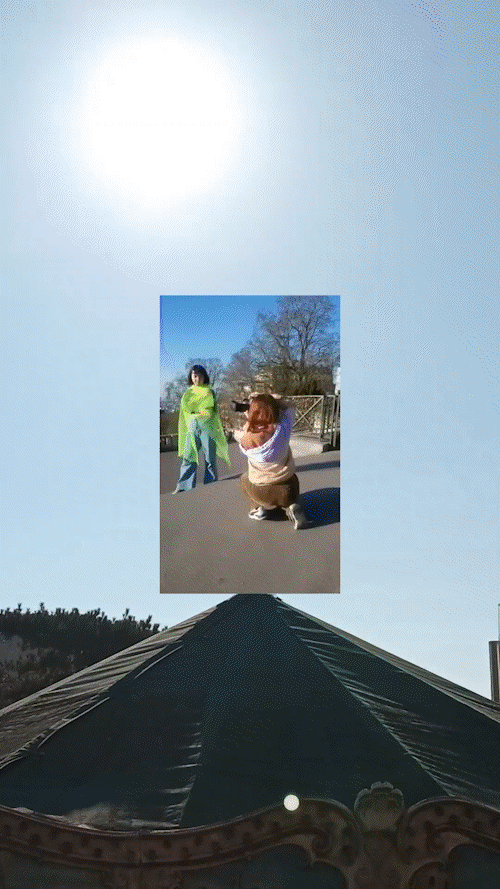 L’objectif était de capturer le sentiment de la musicienne d’être transportée dans un autre monde lorsqu’elle joue, l’immergeant dans un univers poétique. Les couleurs prédominantes étaient le vert et le jaune, inspirées par sa musique. Les voilages flottant dans le cadre illustrent sa sensation de liberté personnelle. Les jeux de lumière et les mouvements des tissus créent un espace onirique, un entre-deux entre la réalité du moment et le rêve.